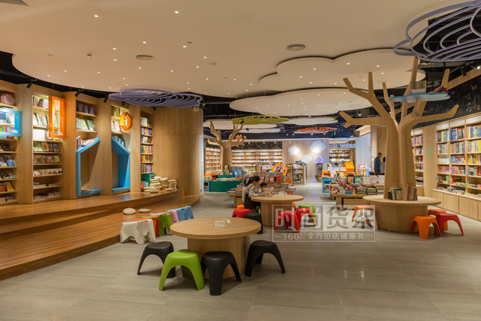 兒童區(qū)的書架采用了橙色、藍(lán)色和綠色等更多豐富的色彩,滿滿的童趣深受小朋友的喜愛。