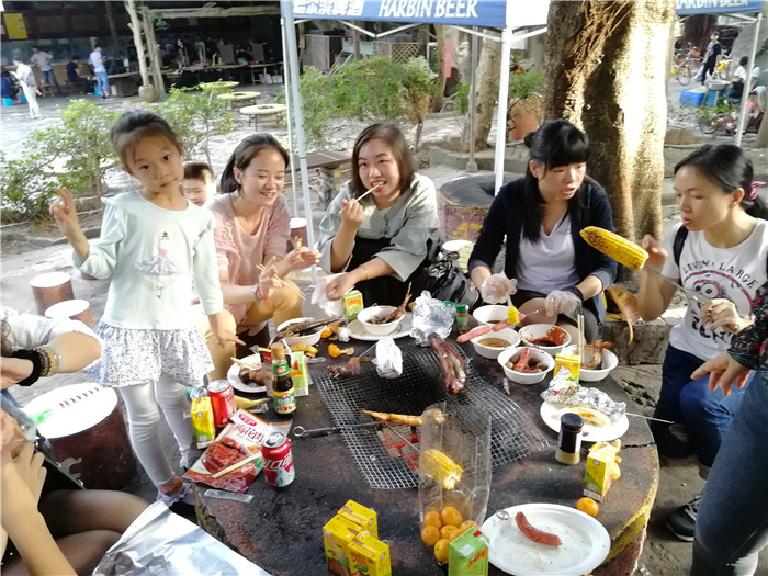 到達目的地后大家分成4桌落座,燒烤正式開始