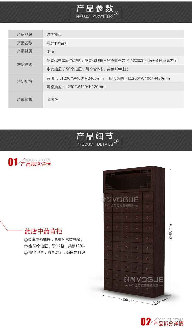 【產品名稱】紫檀木紋中藥柜/藥店木質中藥柜/木紋中藥背柜
