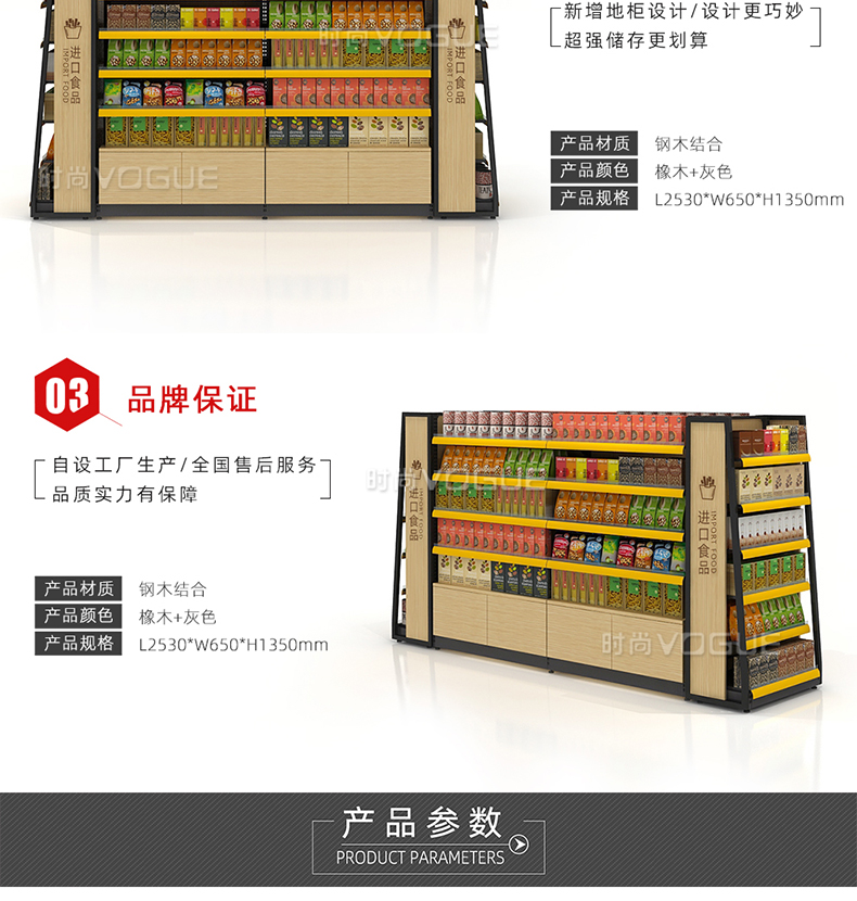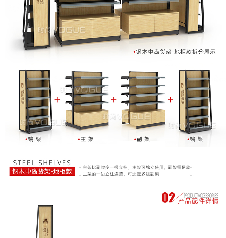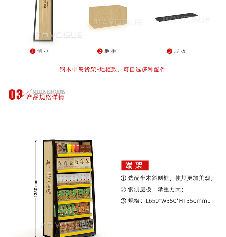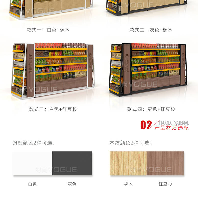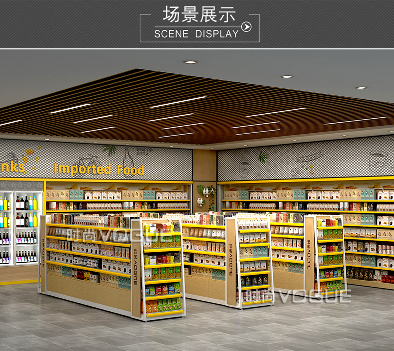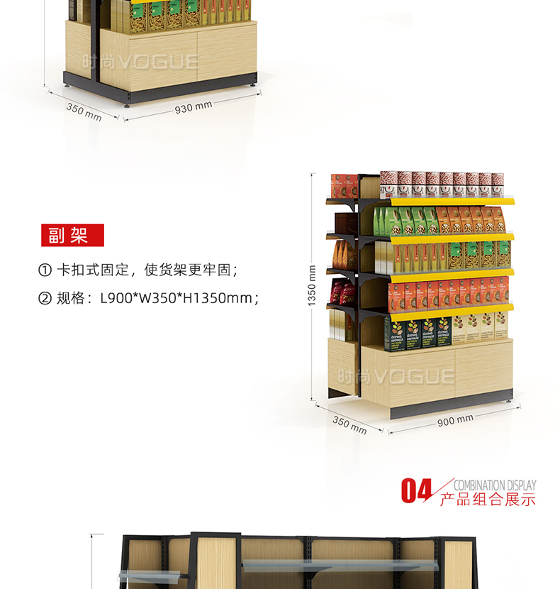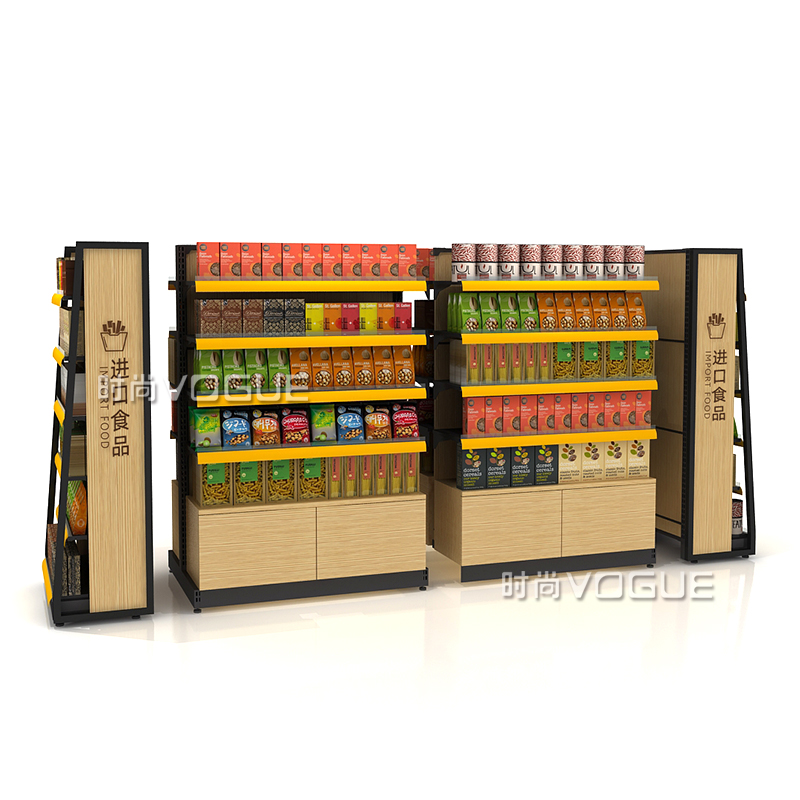 • 產品描述:本款木背板食品貨架是便利店貨架廠家最新推出的一款便利店貨架,底部地柜設計增加儲物功能。