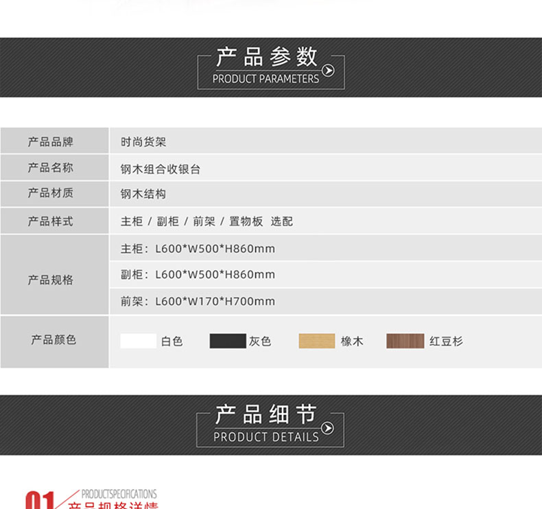 【特點】組合形式,滿足不同收銀區需求;精選材質使用壽命長;擴展側面空間增強收銀臺功能